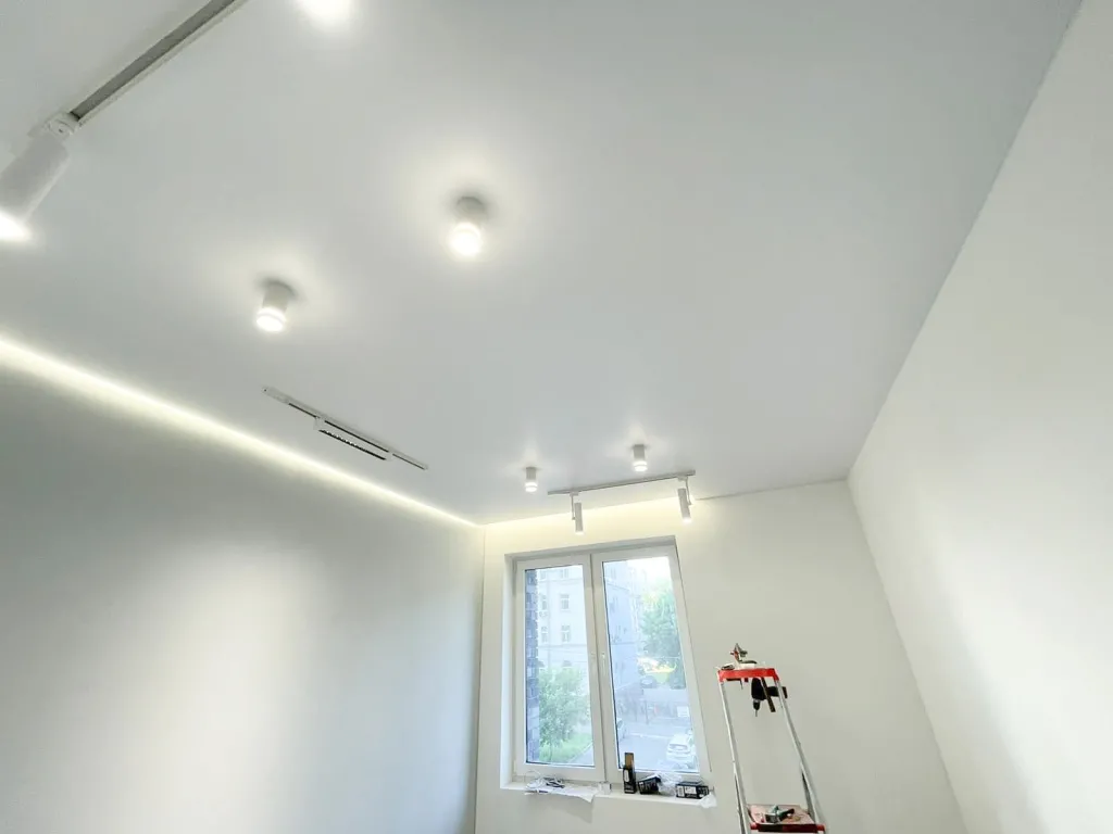 - Монтаж закладных под карнизы, светильники, люстры. При необходимости — устройство каркаса под многоуровневую конструкцию.